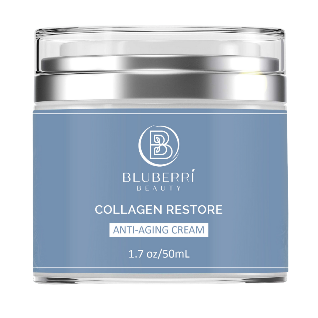 BluBerri Beauty Collagen Restore Anti-Aging Cream is a luxurious collagen filler moisture cream designed to help reduce the appearance of fine lines and wrinkles with natural collagen, while also improving the overall texture and radiance of the skin. This cream contains a blend of natural ingredients, including collagen, which helps to firm and plump the skin for a more youthful look. The formula is rich in antioxidants, which help protect the skin from environmental stressors that can cause signs of aging. Rich moisture instantly restores skin’s cushion and bounce It also contains nourishing ingredients like retinol palmitate and cocoa seed butter which provide deep hydration to the skin, leaving it feeling soft, smooth, and supple. BluBerri Beauty Collagen Restore Anti-Aging Cream has a lightweight, non-greasy texture that absorbs quickly into the skin, making it ideal for daily use. With regular use, this cream can help improve the overall health and appearance of the skin, leaving you with a more youthful, radiant complexion. Over time, the powerful natural Collagen helps fill in lines and wrinkles, leaving your skin smooth and plump. Use it for a complete collagen-infused skincare regime.