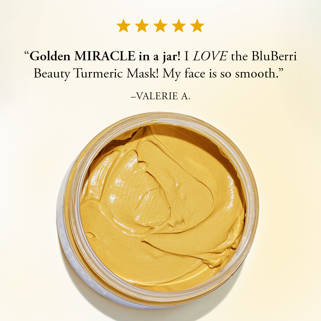 For clearer, smoother, and more radiant skin try the BluBerri Beauty Turmeric Face Mask. This powerful, all-natural turmeric mask will absorb excess oil, clean and tighten pores, and combat acne, eczema and rosacea. Immediately effective, this hydrating face mask work on all skin types, are cruelty and paraben free, contain no SLS, and give your skin a radiant glow in just 20 minutes. Infused with turmeric, a natural antioxidant, this face mask helps to soothe irritated skin while fighting off harmful free radicals that can cause premature aging.